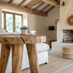 - Natural Linen Curtain Panels: Complete the organic aesthetic by hanging soft, breathable linen curtains that complement the raw wood textures.
