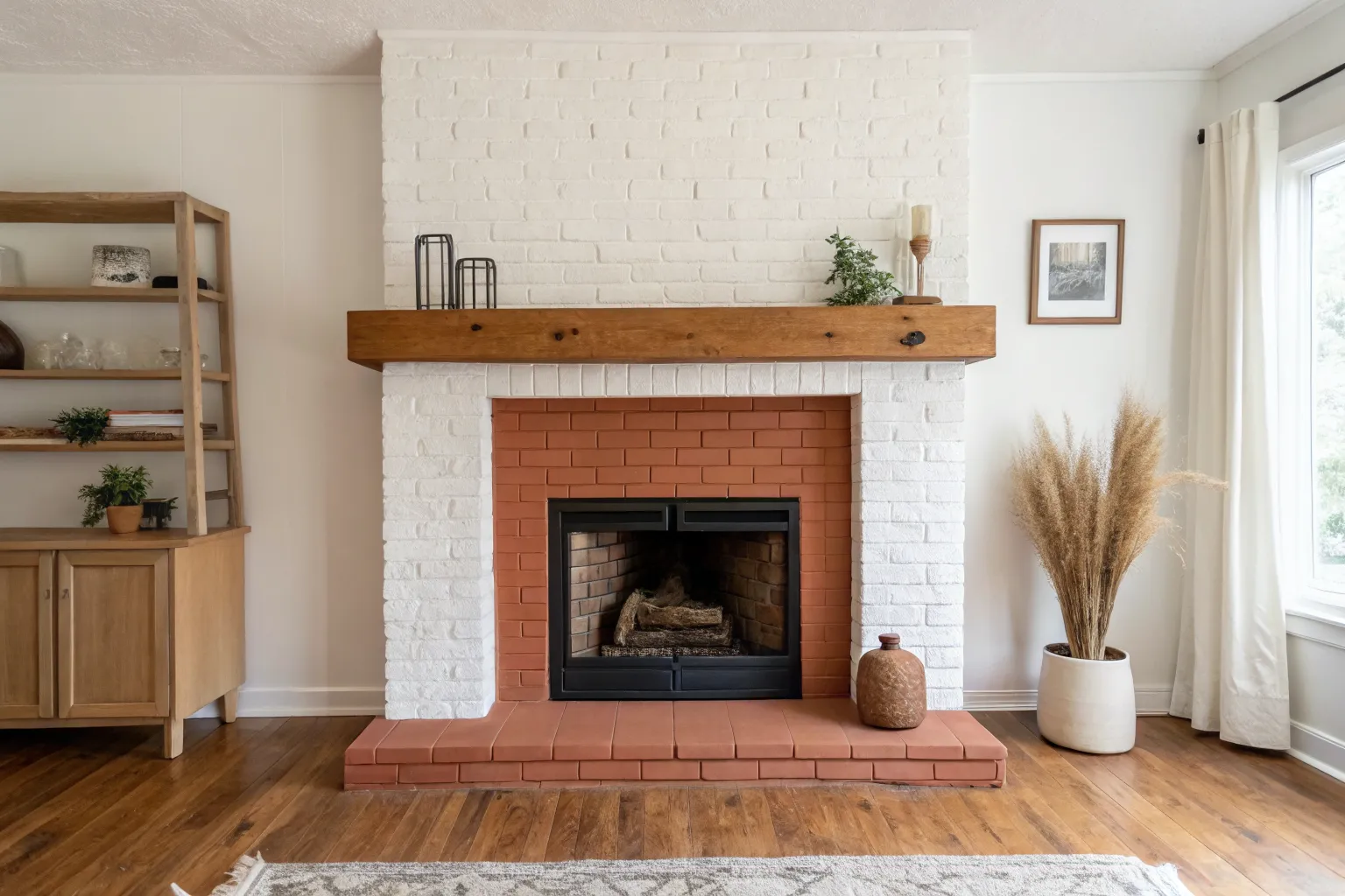 If your fireplace surround is brick, a soft white painted brick treatment can brighten the room while still letting texture do its thing. I’ve done this after a deep clean and good primer, and the brick suddenly looked timeless instead of tired.