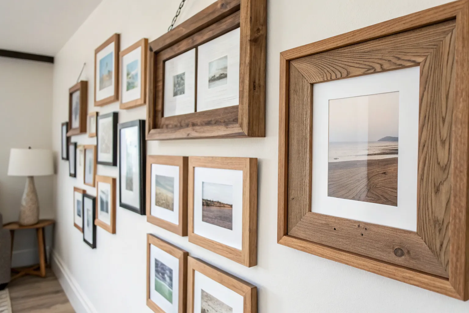 • Light Oak Picture Frames: Replicate this warm, airy look with natural wood frames that complement neutral hallways and bright spaces effectively.