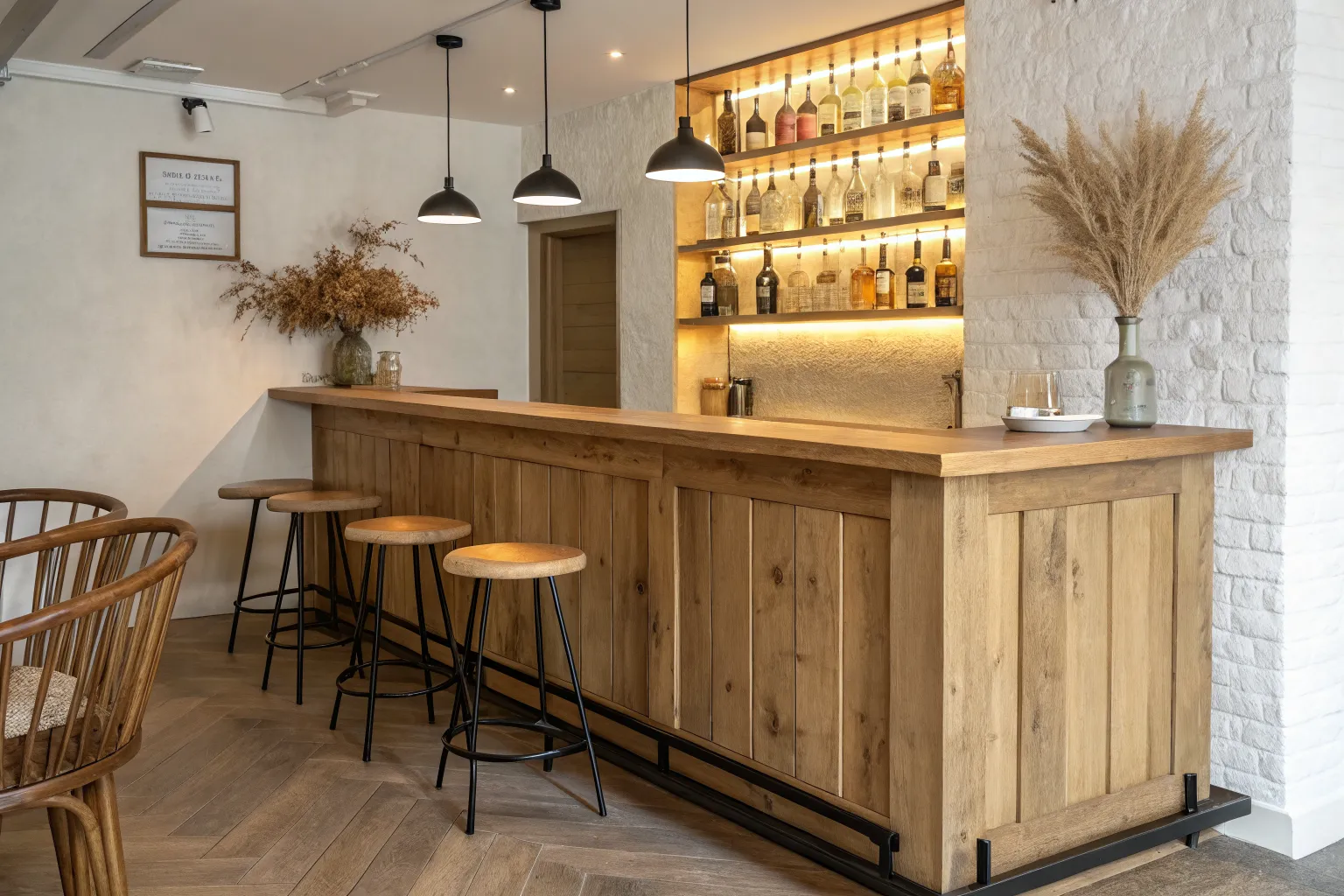 My favorite unexpected pub interior idea is a hidden bar cabinet that looks like built-in paneling until it opens—total speakeasy energy. I’ve built one with matching wood fronts and touch latches, and it’s honestly the most fun reveal in the room.