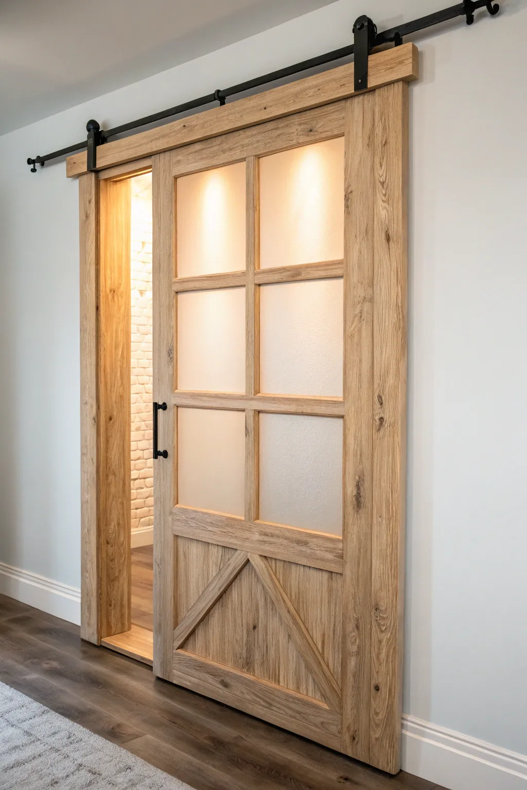 When clients want a lighter look, I’ve done windowpane-style closet doors with divided openings and a frosted insert. It’s a sweet way to keep the rustic frame while letting the door feel less bulky.