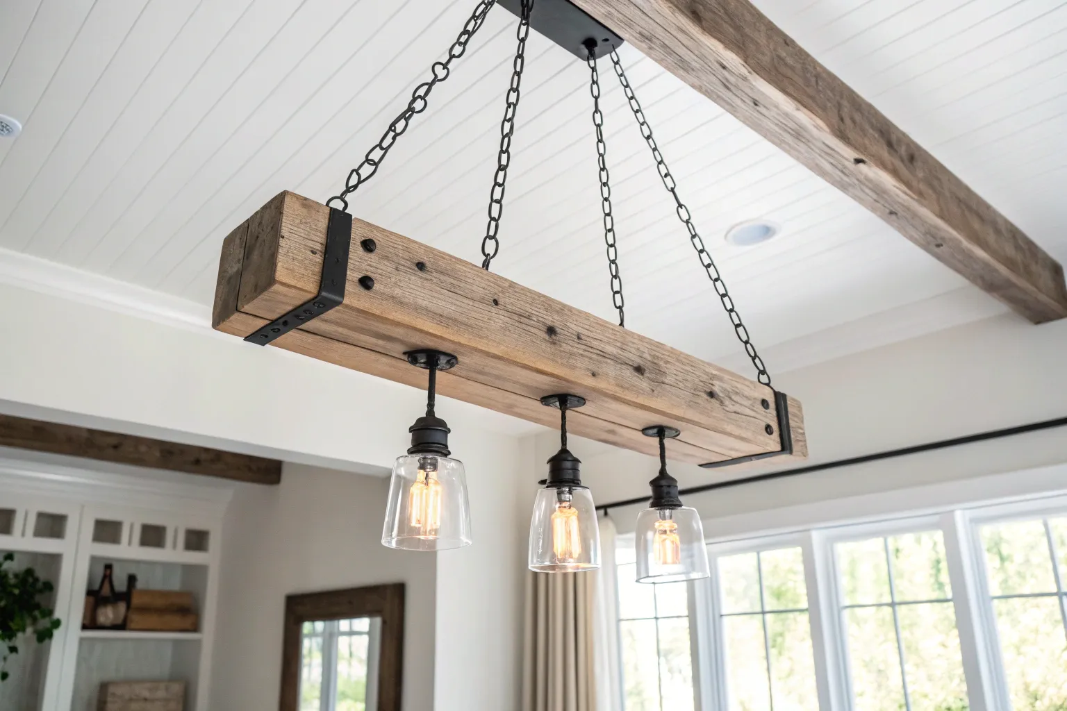 I love using a chunky reclaimed wood beam with simple drops of filament bulbs—it’s my most-requested look for islands and long dining tables. When I wire these, I always leave the wood a little imperfect so the knots and saw marks do the talking.