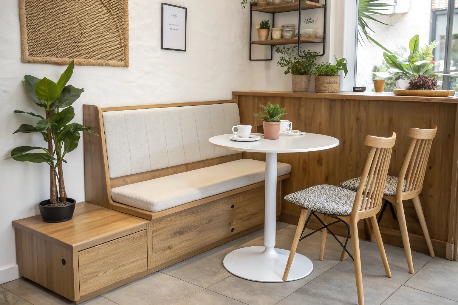 I’ve installed a long built-in bench on the “boring” wall and watched it become the most-used spot in the cafe. If you keep the bench slim and the table depth modest, you’ll fit more people without it feeling tight.