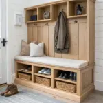 - Floating Shelf with Hooks: Maximize vertical space above your bench for coats and bags while adding a stylish, practical ledge for small items.