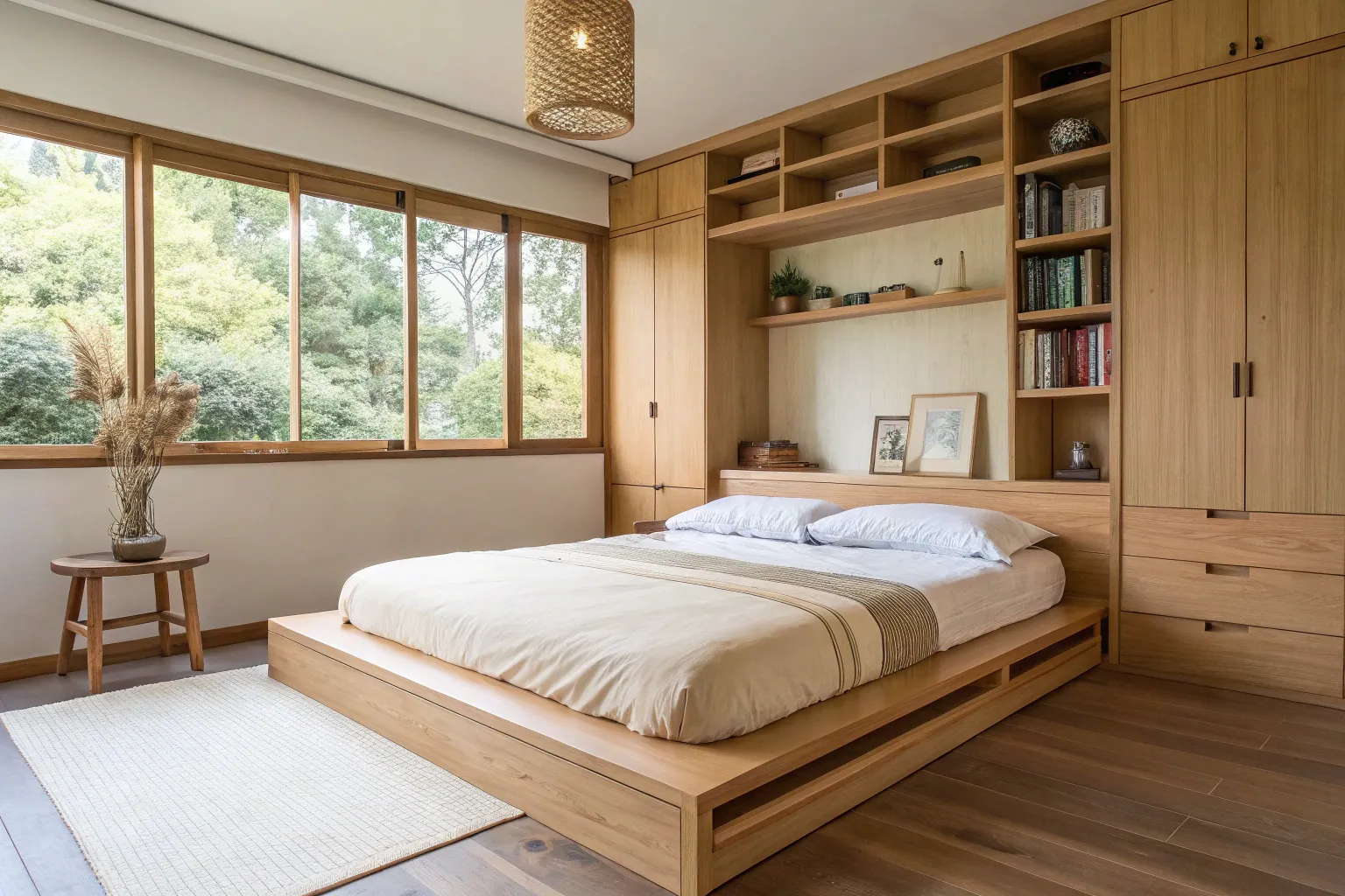 - Woven Pendant Light Shade: Enhance the warm, natural glow of your sleeping area with a textured light fixture that complements wooden decor.