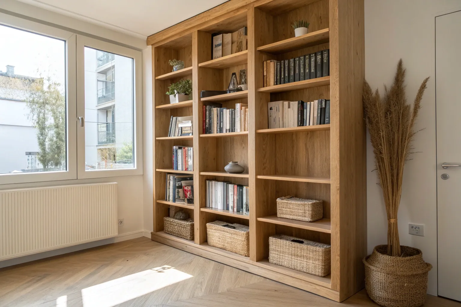- Tall Solid Wood Bookcase: Maximize your vertical storage with sturdy shelving units that mimic the look of custom joinery.