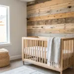 I love adding a wood peg rail because it turns blank wall space into storage for swaddles, tiny jackets, and a diaper bag. I’ve made mine from reclaimed boards, and it keeps the small nursery from turning into a chair-pile.