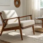Pair darker woods with soft, neutral upholstery; let the wood do the visual work while furnishings provide comfort. A walnut side table beside a cream linen sofa, a natural wood frame with soft abstract art—these combinations feel collected and intentional.