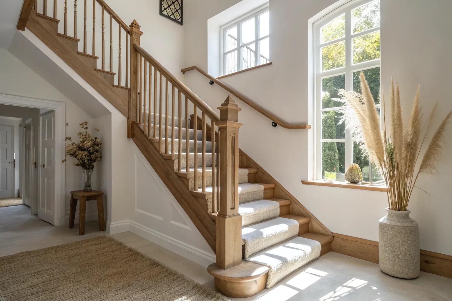 - Decorative Dried Pampas Grass: Style the base of your stairs with tall, fluffy dried grass to complement the rustic, organic vibe.