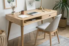 - Minimalist Wooden Writing Desk with Drawers: Choose a clean-lined wooden desk with storage drawers to keep your workspace organized and clutter-free.