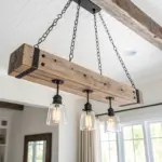 • Modern Black Linear LED Pendant Light: Achieve a sleek, contemporary look that contrasts beautifully with rustic timber by installing a minimalist linear fixture.