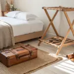 - Set of Wooden Floating Shelves: Instantly create vertical space by stacking sturdy wooden shelves that match your room’s natural aesthetic perfectly.