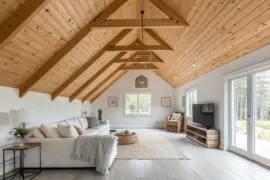 - Shiplap Ceiling Planks: Provide the perfect backdrop for your beams by installing these pre-finished planks for a crisp, linear look.