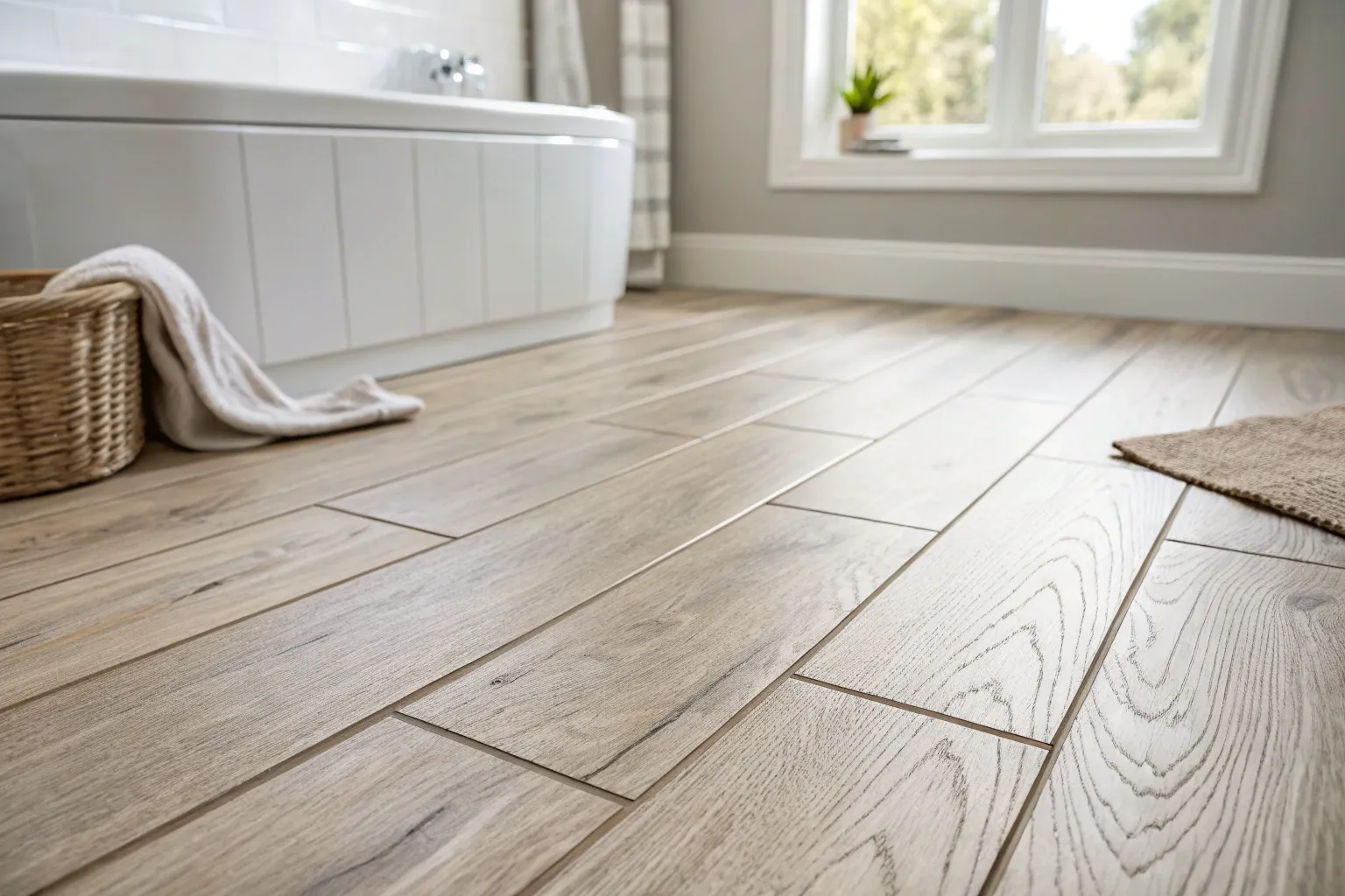 A “picture-frame” border—where you rotate the wood-look tile direction around the edges—adds a custom, built-in look. I tried it once to echo a wood countertop, and it made the bathroom floor feel intentionally designed.