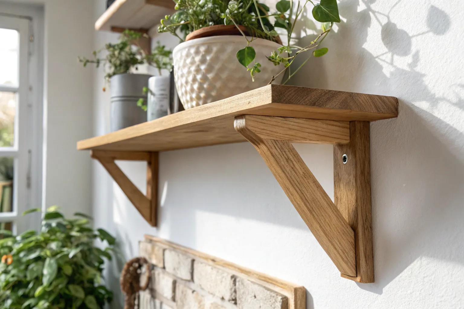 When I’m working in a tight spot, I’ll build wood shelf brackets that “hug” the shelf ends from the sides instead of sticking out underneath. I tried this in a narrow nook once, and it kept the whole setup looking clean and uncluttered.