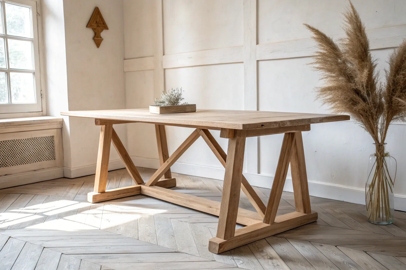 If you want instant farmhouse drama, a wood X-base does the job without needing fancy tools. I’ve found it’s especially forgiving for beginners, and you can beef it up or slim it down to match your tabletop thickness.